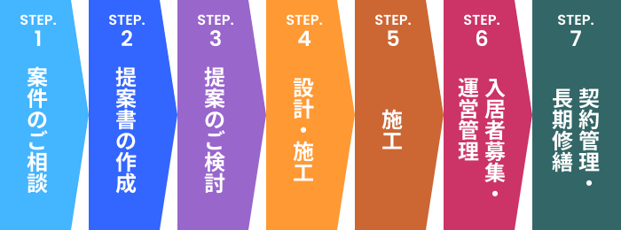 学生マンションのご提案から運営までは、以下の流れで行います。